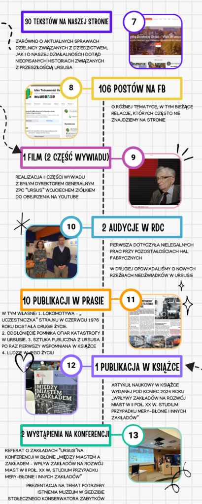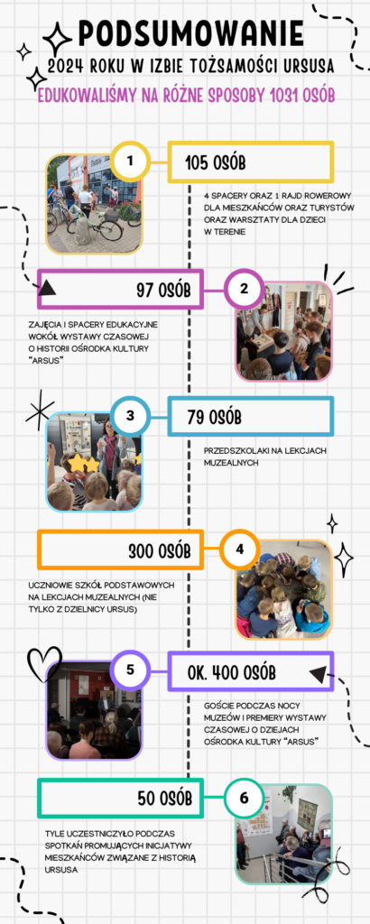 Graficzne podsumowanie 2024 w Izbie Tożsamości Ursusa Opublikowano w dniu 3 stycznia, 2025 Autor: agnieszka.gorzkowska@arsus.pl