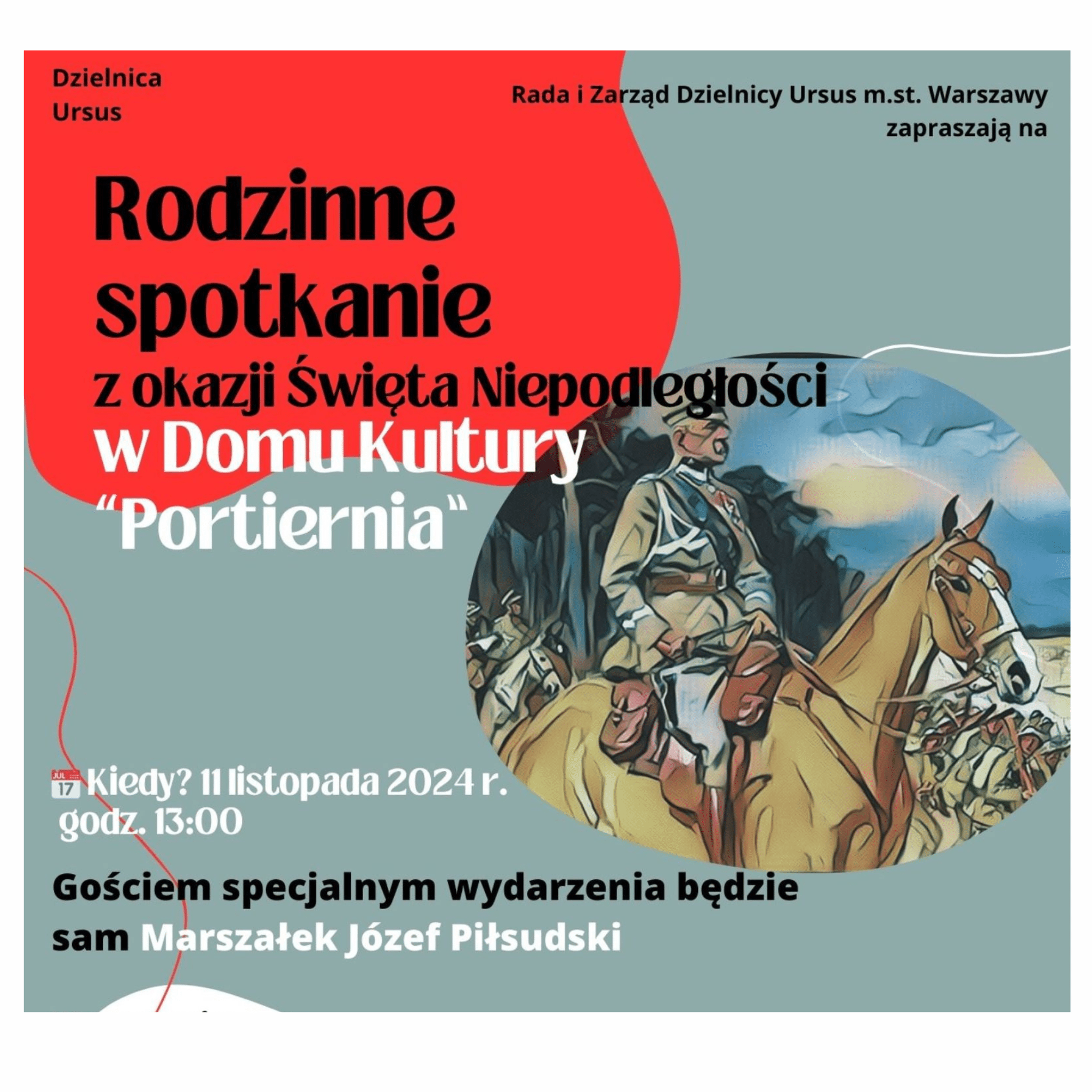 Józef Piłsudski w Ursusie! Urząd Dzielnicy Ursus zaprasza do Domu Kultury „Portiernia” na niecodzienne spotkanie z Marszałkiem z okazji Święta Niepodległości. Rodzinne warsztaty rozpoczną się 11 listopada o godz. 13:00. Konieczne zapisy (poniżej więcej informacji)