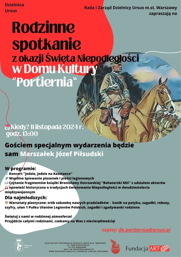 Liczba miejsc jest ograniczona, dlatego nie czekaj i zapisz dziecko na zajęcia już dziś! Zgłoszenie należy przesłać na adres: dk.portiernia@arsus.pl. W tytule maila prosimy wpisać „Niepodległość”, a w treści liczbę uczestników i wiek dzieci.