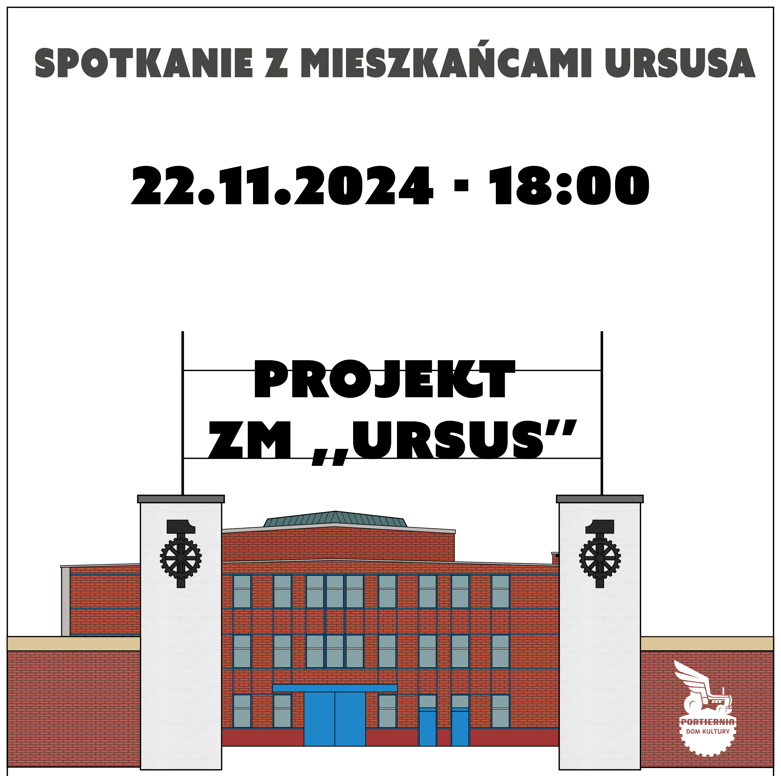 Zapraszamy serdecznie na rozmowę o projekcie dotyczącym dawnych Zakładów Mechanicznych „Ursus”. Spotkanie poprowadzi Dawid Rentfleisz, autor projektu, który wciąż jest w fazie tworzenia. Na pewno nieoceniona i potrzebna będzie pomoc mieszkańców, którzy mogą włączyć się w przedsięwzięcie i ułatwić jego finalizację. Spotkanie odbędzie się w Domu Kultury „Portiernia” w piątek, 22 listopada o godz. 18:00 w kawiarence na 1. piętrze