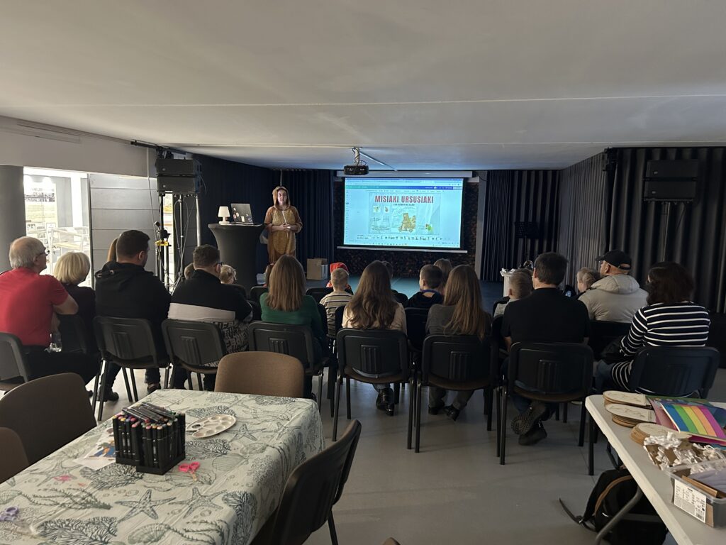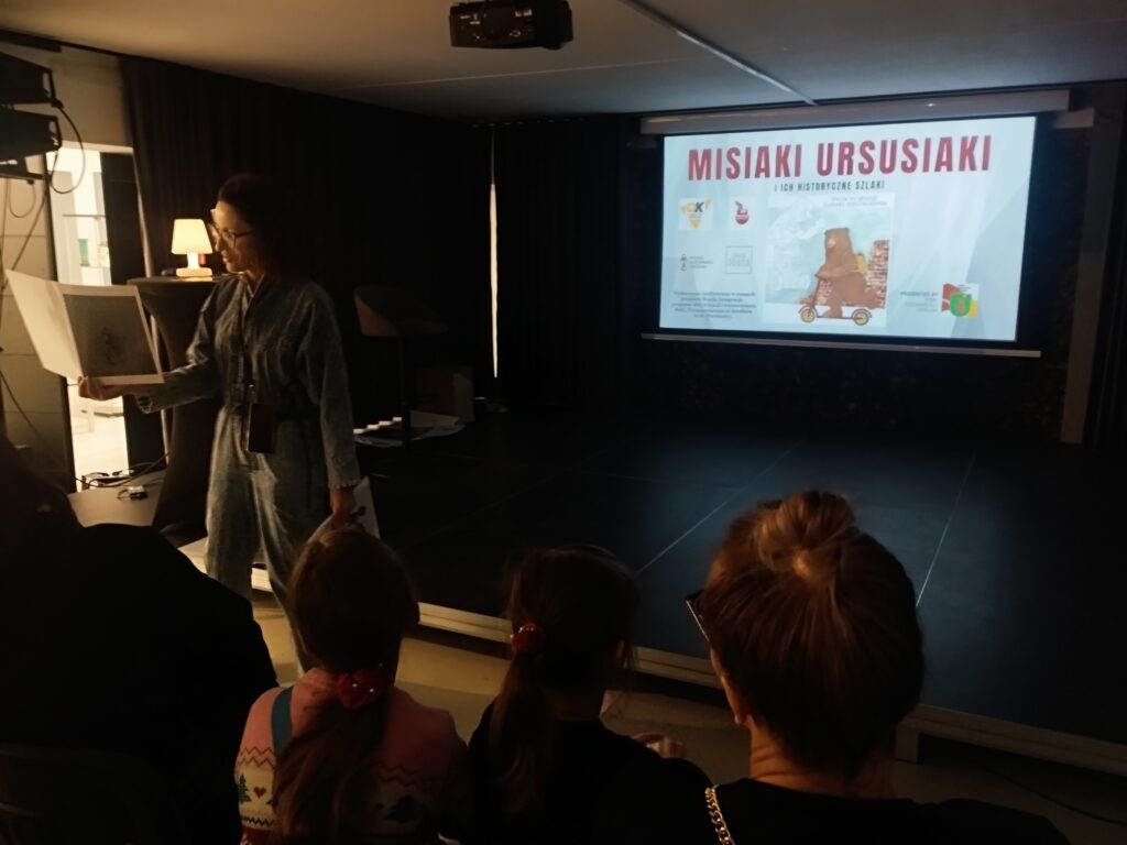 W spotkanie wmieszany został nasz autorski rodzinny spacerownik „Misiaki Ursusiaki”. Książeczka stała się motywem do opowiedzenia przy pomocy filmu, jak powstają takie drukowane wydawnictwa dla dzieci. Podczas prezentacji nie zabrakło zagadek i pytań do najmłodszych. Dzieci wraz z opiekunami mieli do wykonania proporczyk z wybranym Misiakiem Ursusiakiem na wzór dawnych proporczyków z PRL-u. Do wypełnienia kolorem były: wypalony ze sklejki herb historyczny dzielnicy Ursus oraz traktorki (najbardziej rozpoznawalny symbol marki Ursus)