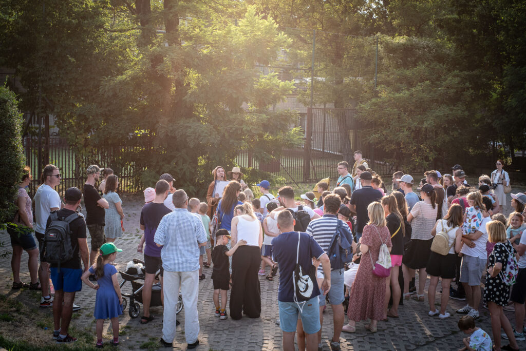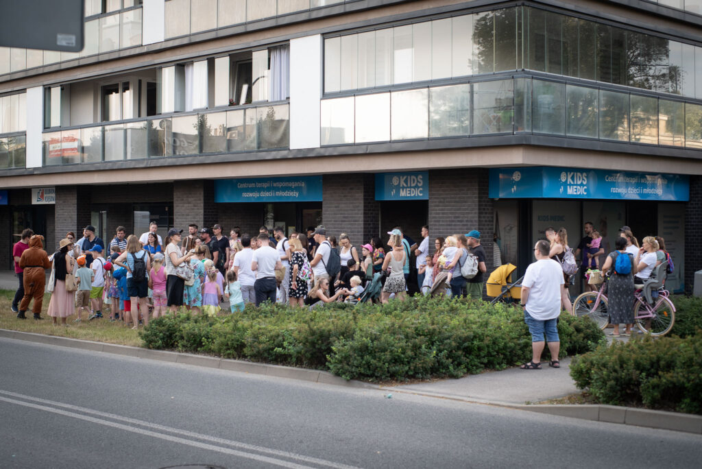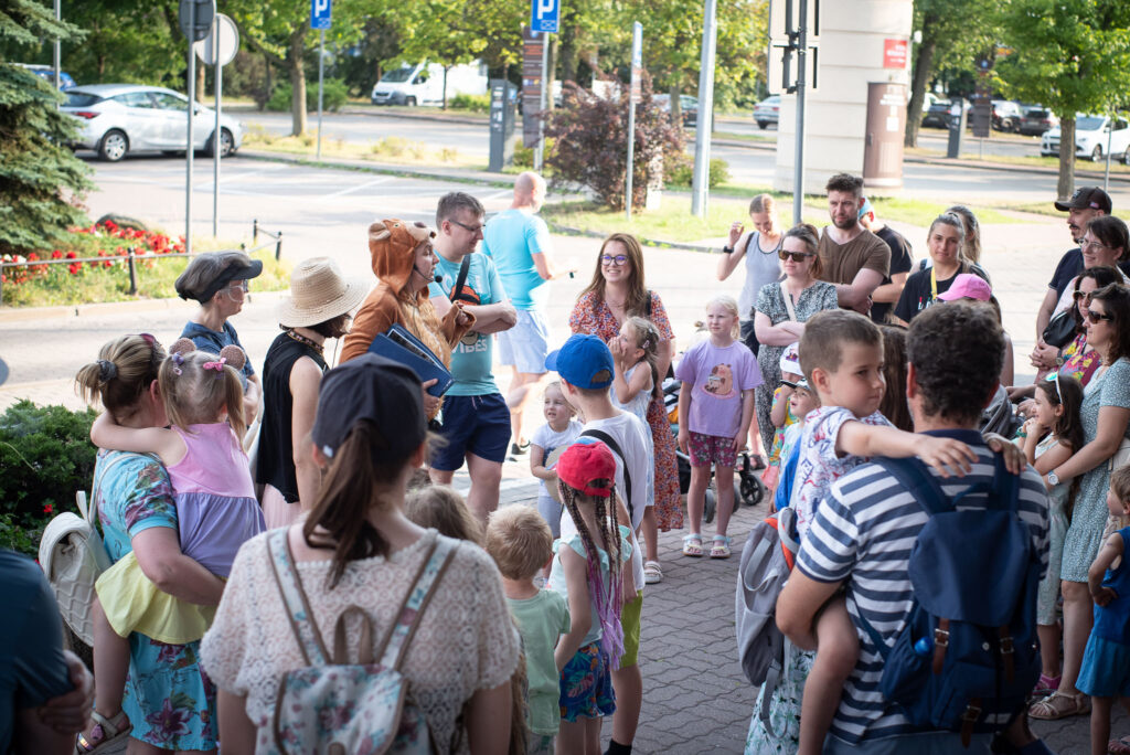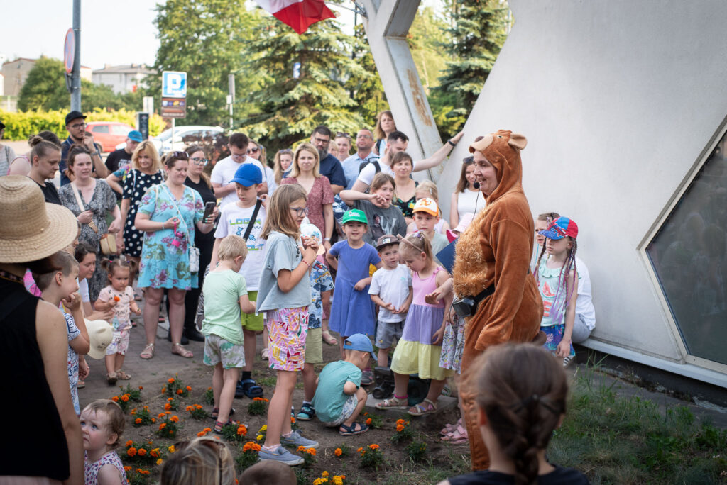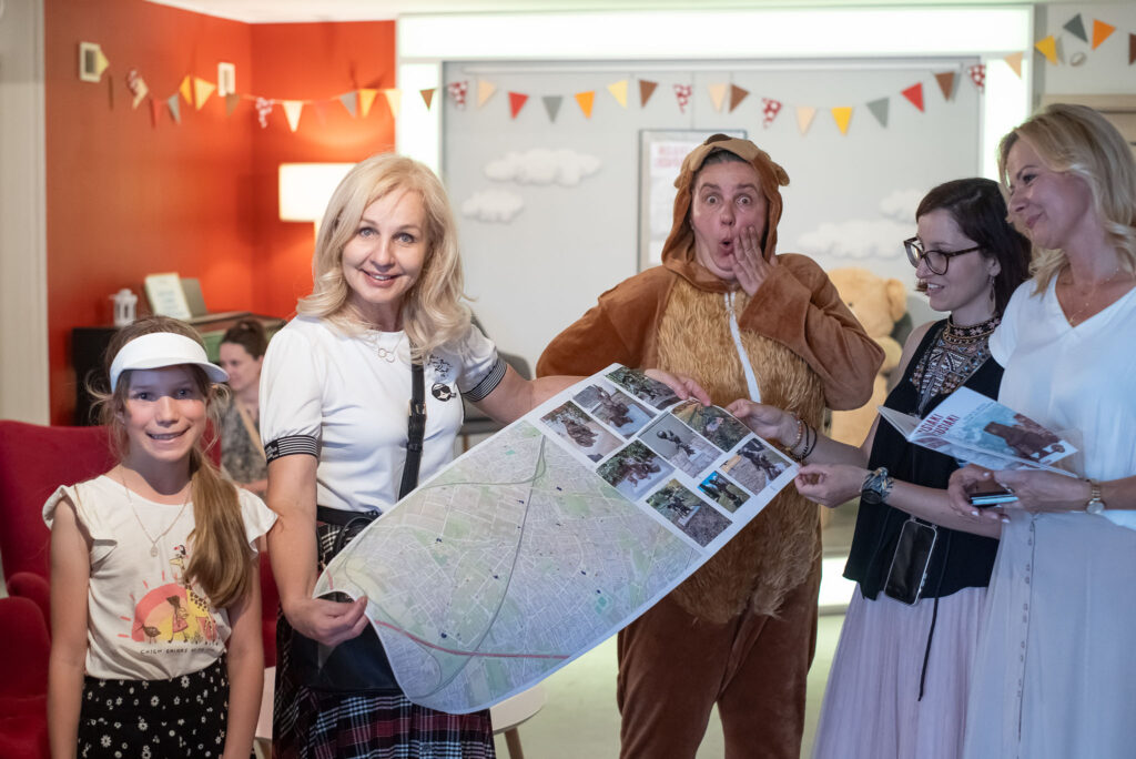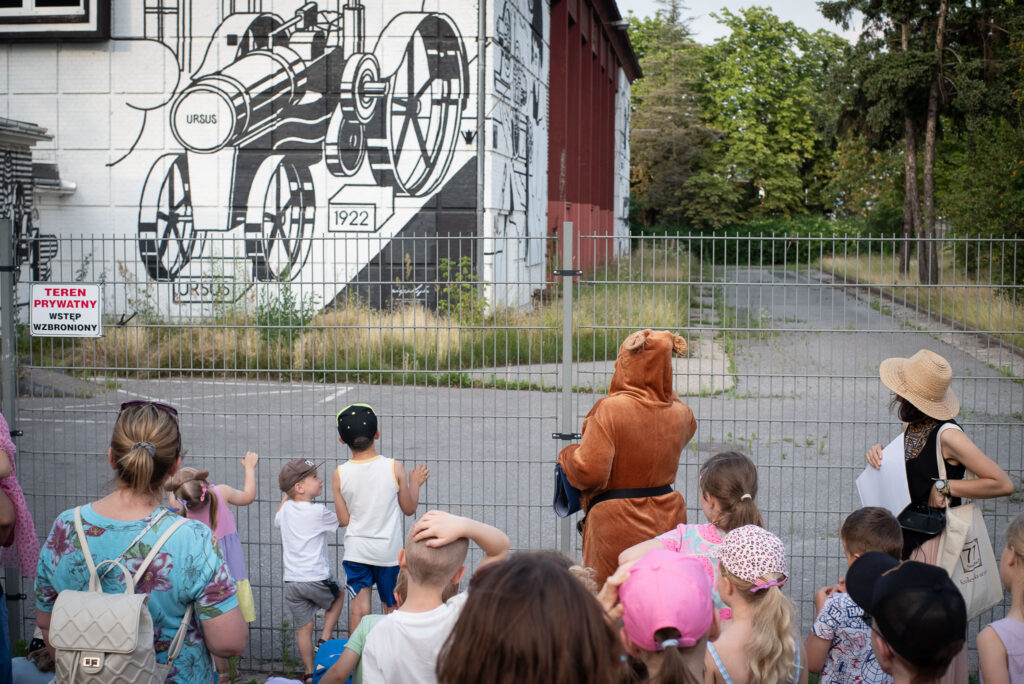 Na wszystkich zainteresowanych pod Urzędem Dzielnicy Ursus czekał miś i zabrał uczestników na spacerek, który ze względu na najmłodszych zawierał wiele zadań dedykowanych dzieciom.