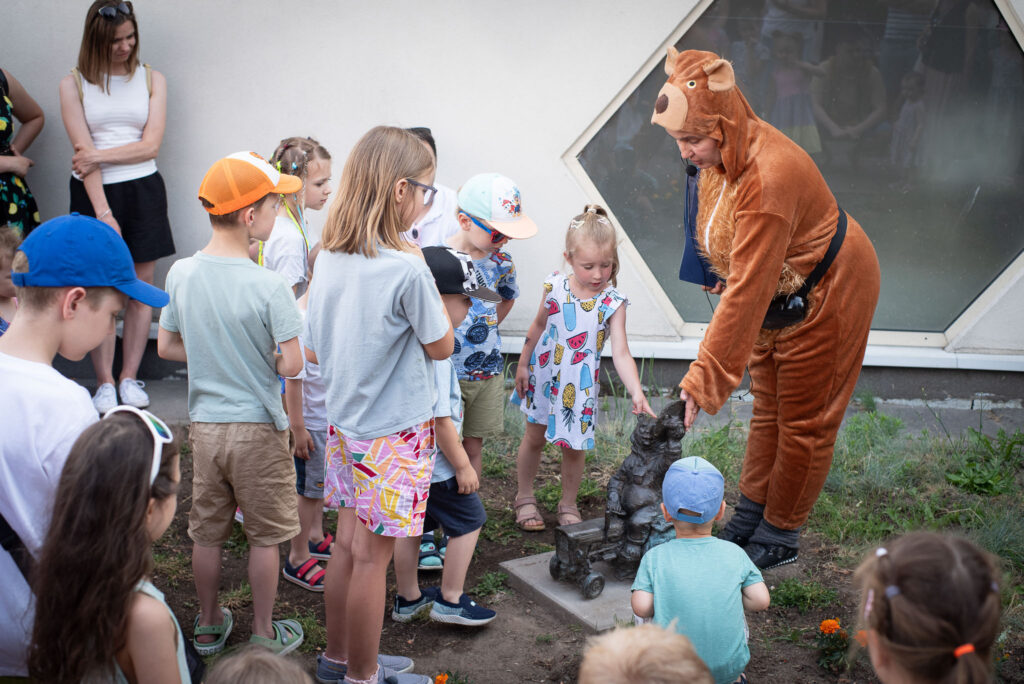 A dzień po premierze, w piątek, pierwsze dzieci spacerowały już z książeczką i dokumentowały swoje odwiedziny rzeźb-niedźwiadków. Przychodzą do nas również osoby, które nie mogły być wczoraj – biorą książeczkę i ruszają w miasto – czekamy na wszystkich, którzy wypełnią książeczkę i ze zdjęciami przy rzeźbach przyjdą do nas po stempel, podpis i nagrodę.